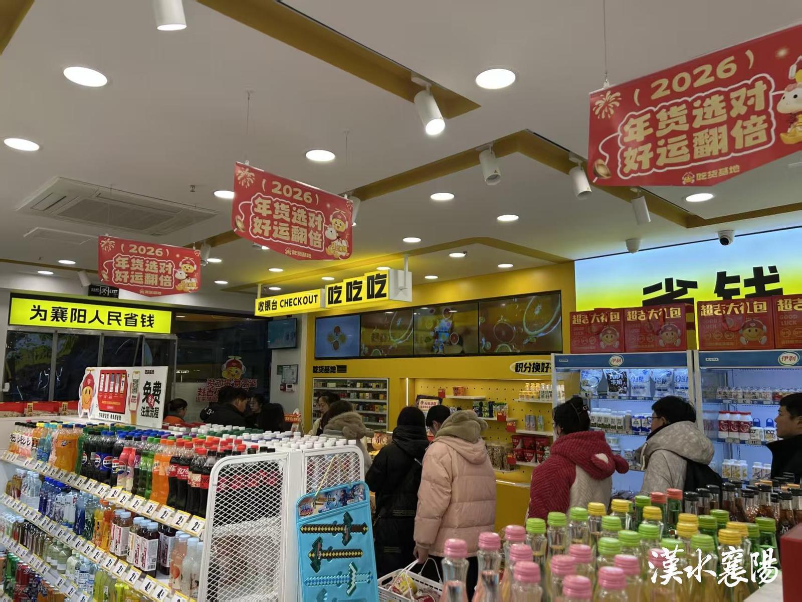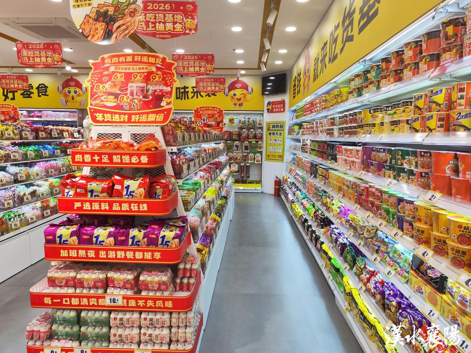 走进“吃货基地”青隽城店,卧龙锅巴、襄王妃烤馍等本土零食被摆放在显眼位置。“扎根襄阳,就得先了解襄阳人的口味。这些本地零食,既能满足本地吃货的需求,还能作为特产送给外地朋友!”刘宗保说,节前他们特意加大了本土零食的备货量,让襄阳味道成为年货中的“主角”。