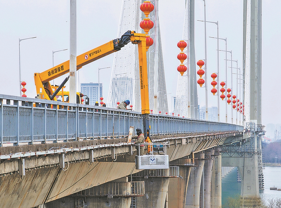 近日,市住房和城市更新局城市照明保障中心技术人员在检修卧龙大桥亮化线缆。连日来,该中心对春节期间持续高强度运行的城市照明设施进行检查维护,确保亮化设备安全运行。记者 谢勇 摄
