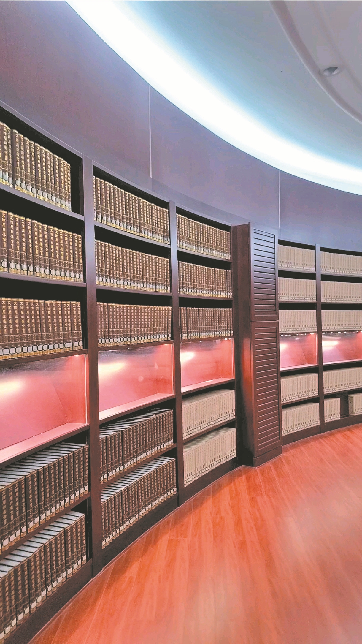馆内同时藏有文渊阁版《四库全书》授权影印版本,1987年上海古籍出版社出版的小开本与后续刊印的大开本相映成趣,均为原版影印,最大程度保留典籍原貌。