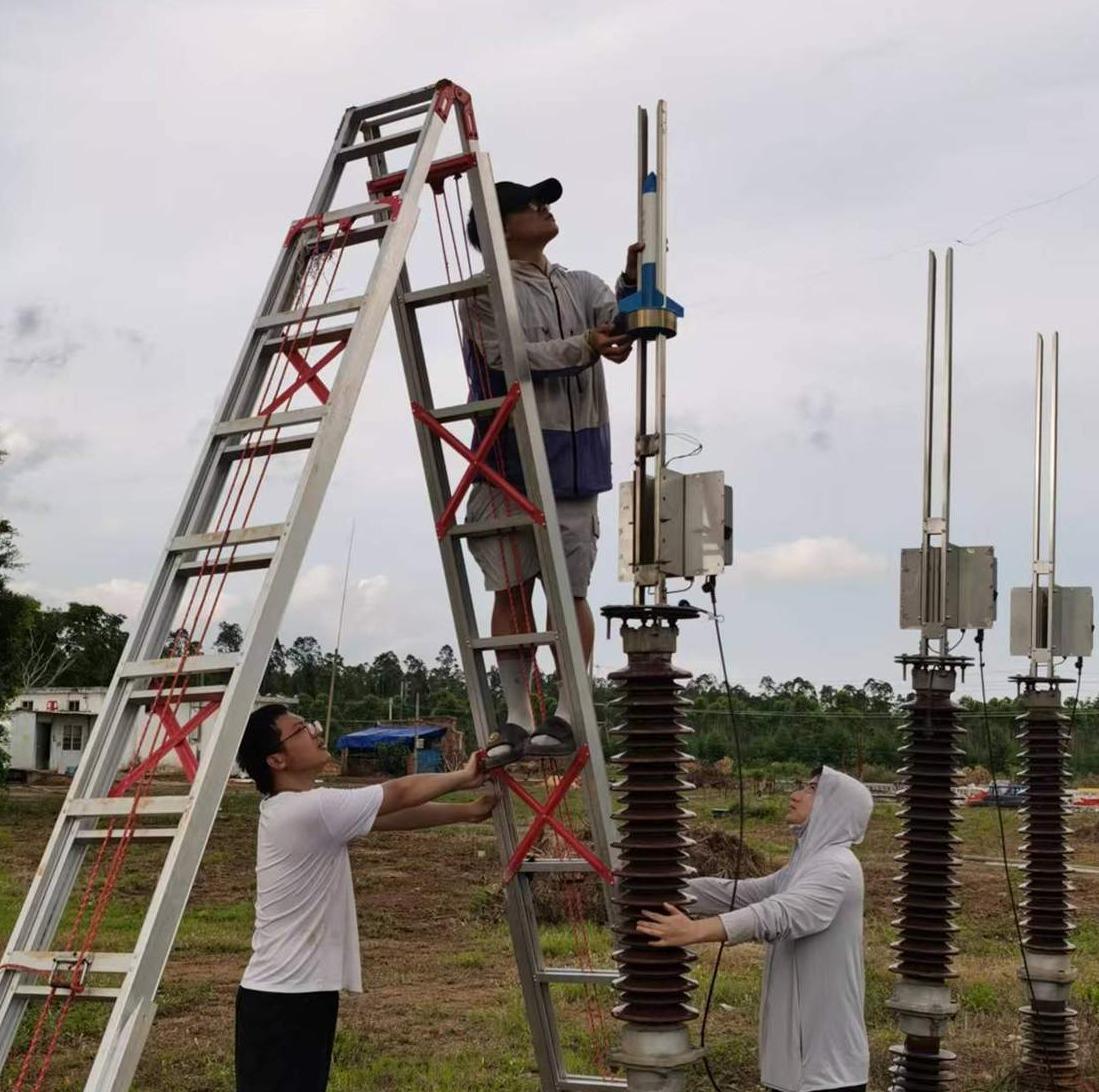 武汉大学雷州野外雷电试验研究基地青年团队正在调整设备。 周蜜 供图