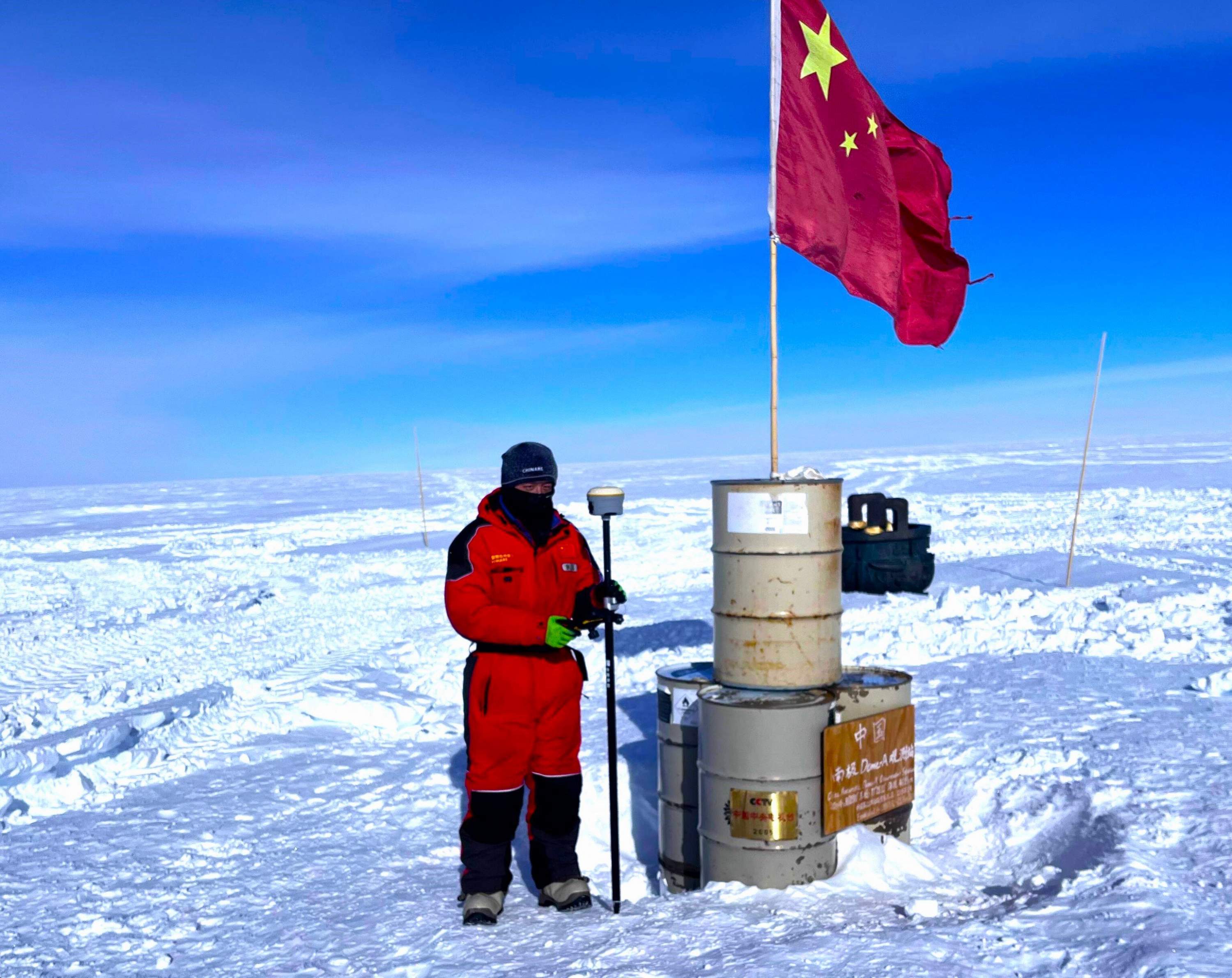 中国第40次南极科学考察队队员、武汉大学中国南极测绘研究中心博士生耿通正在进行地形测绘。 本人供图
