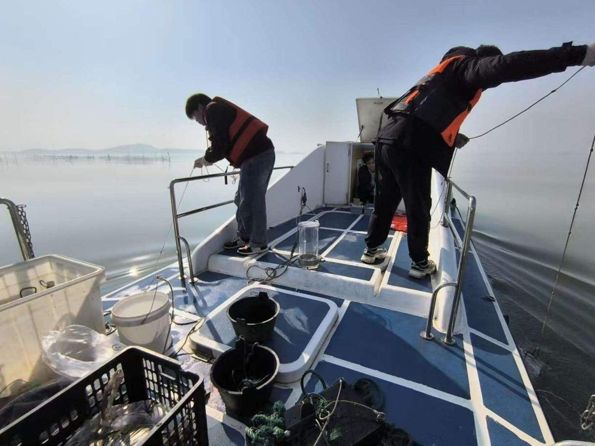 武汉大学梁子湖国家野外科学观测研究团队正在采集水样。 徐新伟 供图