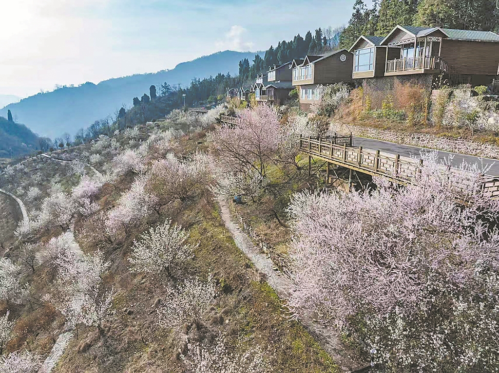 近日,保康县城关镇小沟村百亩樱桃花盛开,洁白的花朵挂满枝头,漫山遍野的樱桃花扮靓了山村,吸引游客前来观赏。