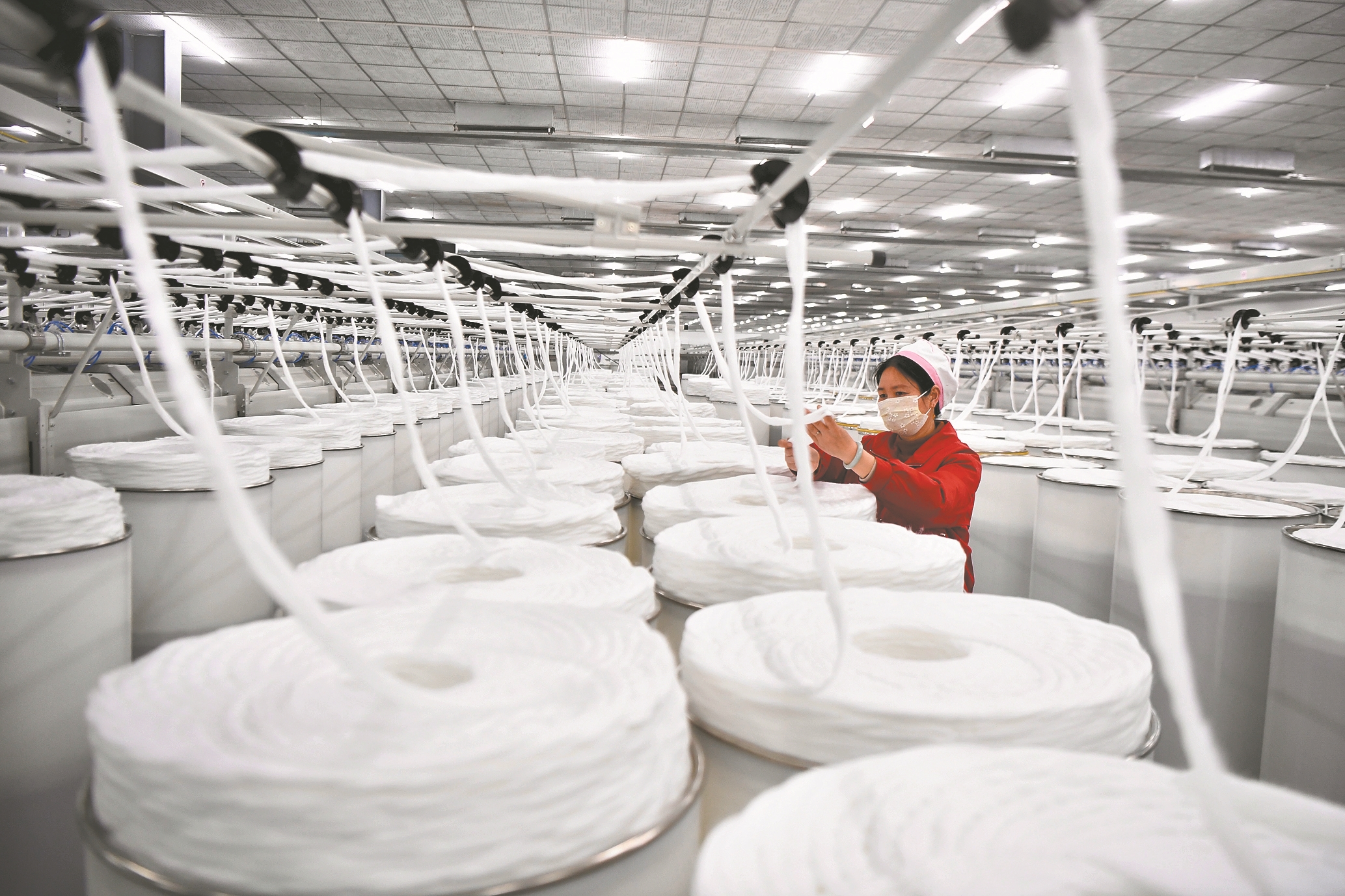 3月10日,襄州区湖北金恒昌纺织有限公司四期项目生产车间内,新引进的涡流纺纱机、喷气织机马力全开赶订单,冲刺一季度开局良好。