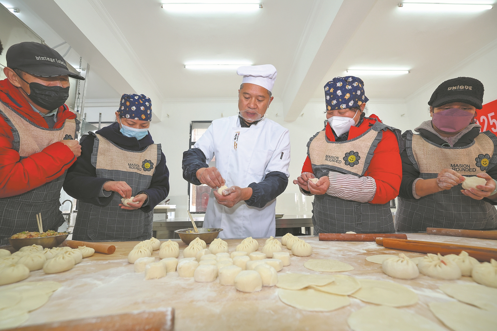 特色面点班教室里,则是另一番热气腾腾的景象。学员们在教师王学银的带领下,围着操作台,正准备将捏好的一个个圆圆的小包子放进蒸笼。因为人数不多,每位学员都能够上手尝试,老师也有充足时间进行一对一答疑。“以前在大班上课,老师忙不过来,有问题也不好意思总问。现在小班教学,感觉自己被看见、被重视了。”一位学员笑着说。
