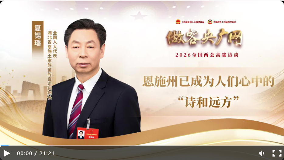 2026年全国两会期间,《做客央广网》对话全国人大代表、湖北省恩施土家族苗族自治州州长夏锡璠,围绕生态价值转化、硒资源赋能新质生产力、文旅融合升级等议题展开探讨。这位土生土长的土家族州长,分享了恩施州在“十四五”期间的山乡巨变,以及面向“十五五”建设“绿水青山就是金山银山”实践创新区的清晰路径。