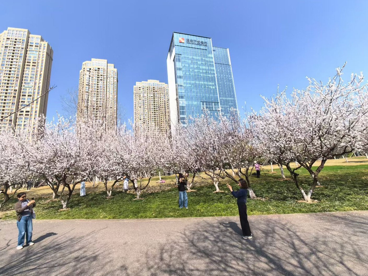 离开主干道的喧嚣,记者拐进沙湖片区,周遭瞬间安静下来。沙湖公园像是城市中心的“绿肺”,环湖绿道上,跑步的人三三两两,几只水鸟掠过湖面,划开一道涟漪。市民秦先生最近两天清早都在公园内散步,“玉兰和杏花这几天正好,但大家最惦记的还是樱花。再过一周左右,1000多株樱花即将盛放,亲水平台那边最集中。樱花映着湖水、绿树,特别好看。”