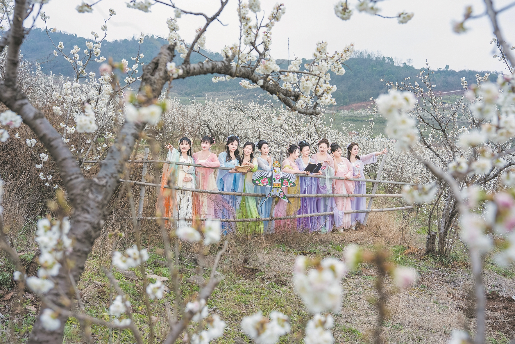 “这帮姐妹来自本地的一个舞蹈社团,她们经常请我拍视频。最近她们正好排练了一段新舞蹈《立春》,恰逢赏花季,就想到户外拍一段视频留作纪念,我就给她们推荐了樱桃沟。”“占兵”说。