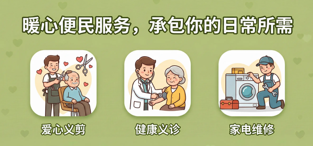 小家电维修、衣物护理、养生餐制作,还有磨刀剪、配钥匙、缝补衣物等便民服务,件件都是实打实的贴心,把温暖送到心坎上。