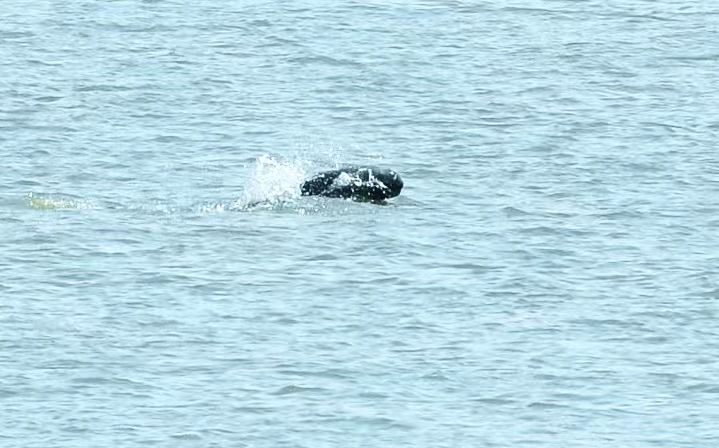 在长江武汉新洲段拍摄到的江豚戏水情景。新华社发(金振强 摄)