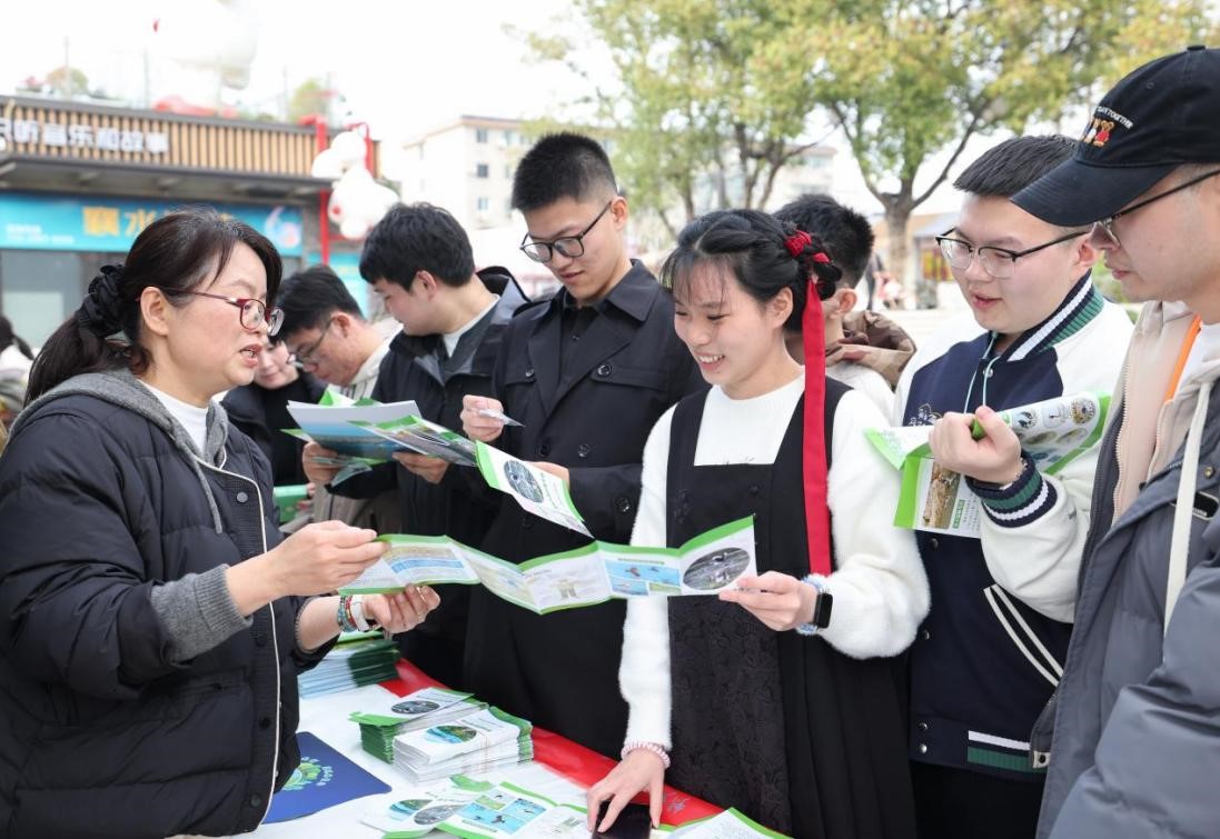 工作人员现场宣传林长制政策、野生动植物保护、湿地保护等知识 杨东摄