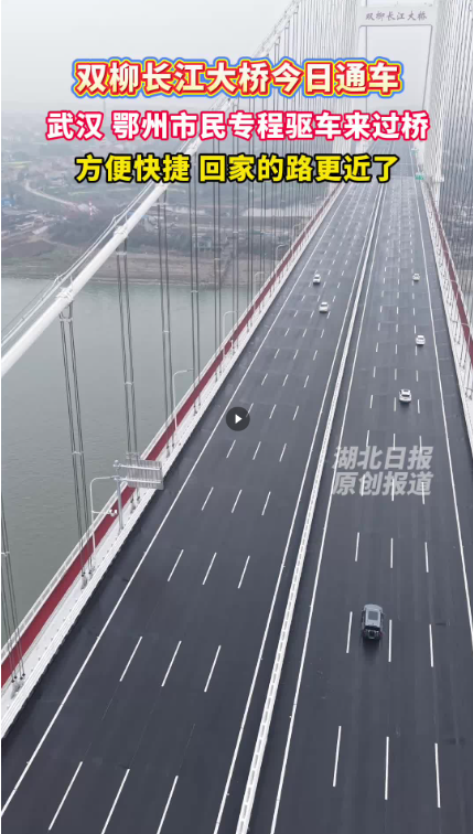 湖北日报讯 (记者廖志慧、戴辉、张灿、通讯员王翔、杨鑫)3月20日上午,武汉市新洲区的柯先生导航过江时惊喜发现,新洲至鄂州华容的行车时间从过去的90分钟缩短至5分钟,导航线路增加了一条新的过江通道。当天,由湖北交投集团投资建设的武汉第12座长江大桥——双柳长江大桥建成通车。