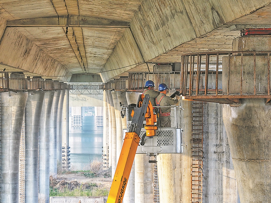 3月24日,市住新局城市照明保障中心技术人员对卧龙大桥桥墩投光灯进行更换。