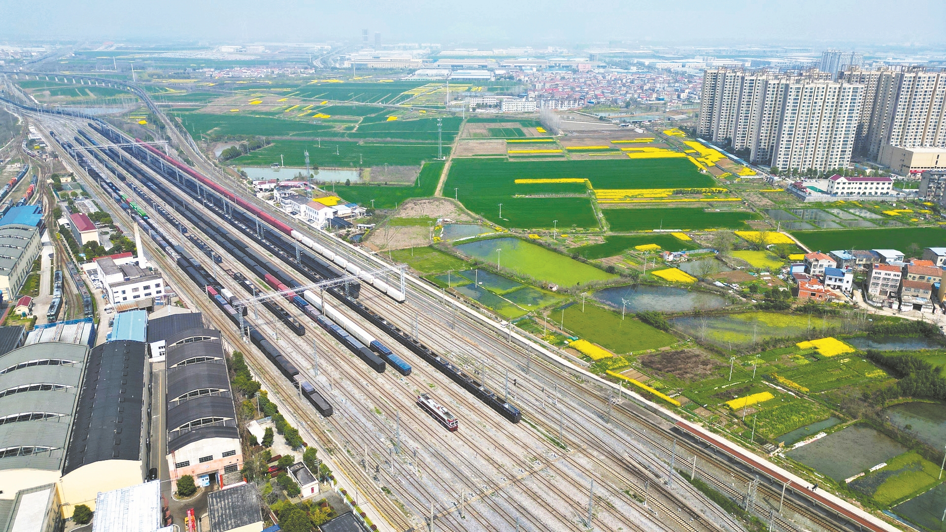 为助力春耕生产,襄阳北车站充分发挥编组站车种多、去向广、作业灵活的优势,千方百计编组“一站式”直达列车。此举减少了货物中途的换装和编组次数,大大缩短了运输时间,确保货物能及时抵达目的地。图为3月20日,襄阳北车站编组场繁忙的作业场景。