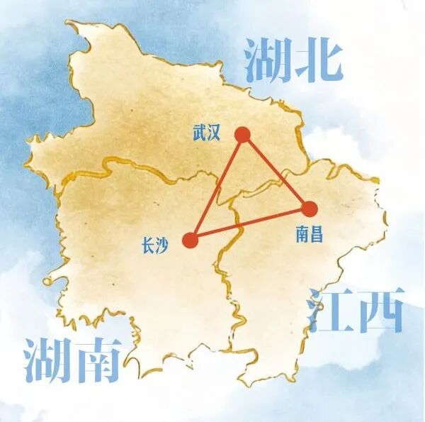 三城牵手,是地理相近、文脉相通、民心相融的必然。三座城市相隔均在300公里左右,武汉至长沙高铁最快不到1.5小时;武汉到南昌最快不到2个小时;长沙至南昌最快也在1.5小时以内,三座城市形成了便捷的“同城生活圈”——早上在武汉吃热干面,中午到长沙尝臭豆腐,傍晚便可品味南昌瓦罐汤的鲜香。一日纵览三城烟火早已成为现实。