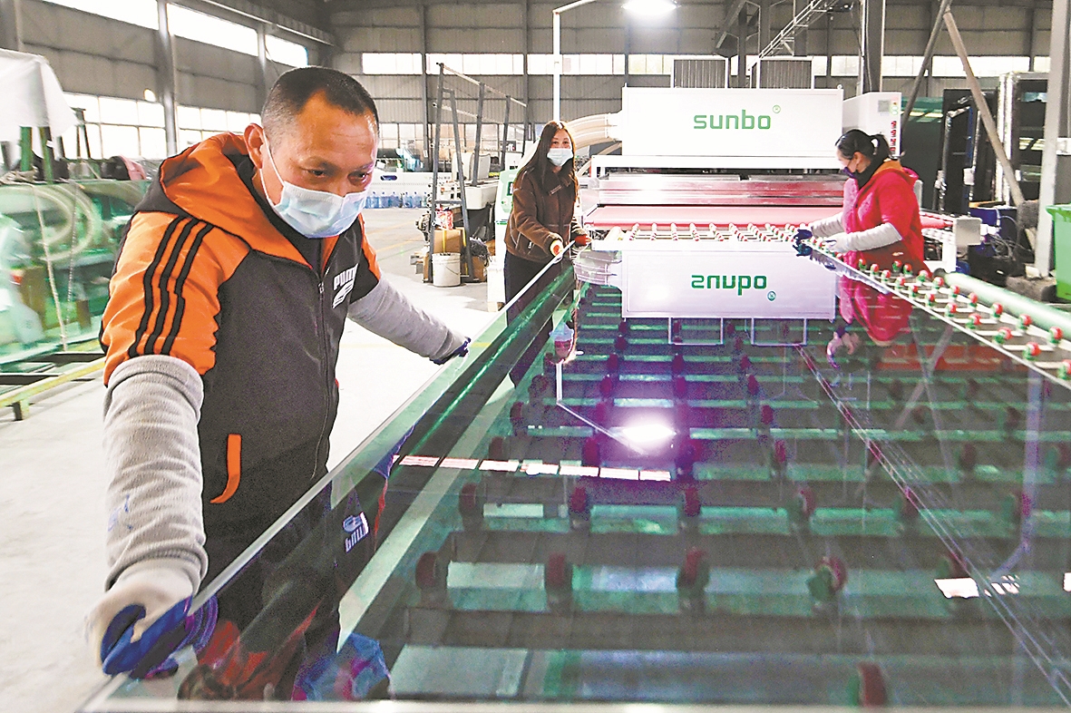 3月27日,在位于襄州区肖湾街道的湖北瑞兴节能科技有限公司生产车间里,工人正在生产中空玻璃、钢化玻璃、夹胶玻璃等功能玻璃产品。该公司持续提升产品竞争力,功能玻璃产品俏销市场。记者 乔森垚 刘自航 摄