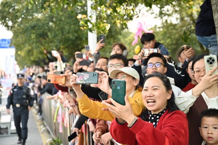 赛道之上保障有力,赛道之外热情如潮。58支特色啦啦队把气氛拉满:威风锣鼓震天响,鱼门拳虎虎生风,打花鞭上下翻飞,街舞少年踩着节拍炫技……沿途观赛的市民们自发聚拢,一声声“加油”此起彼伏,如暖流般注入每一位跑者的心间。