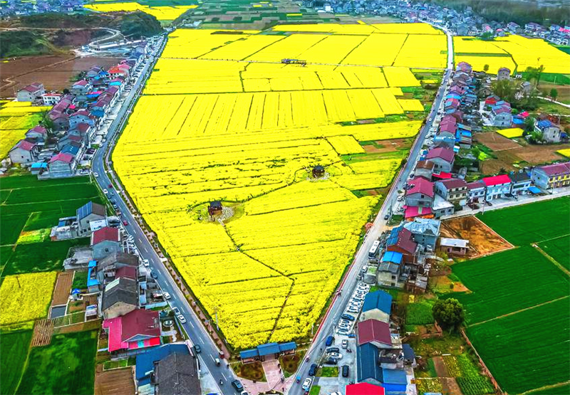 如今,张棚村已成为谷城县油菜制种标准化示范村,辐射带动周边乡镇发展油菜制种产业超万亩,曾经冷清的空心村,因一粒小小油菜籽,重拾浓浓烟火气,迎来了四方游客。