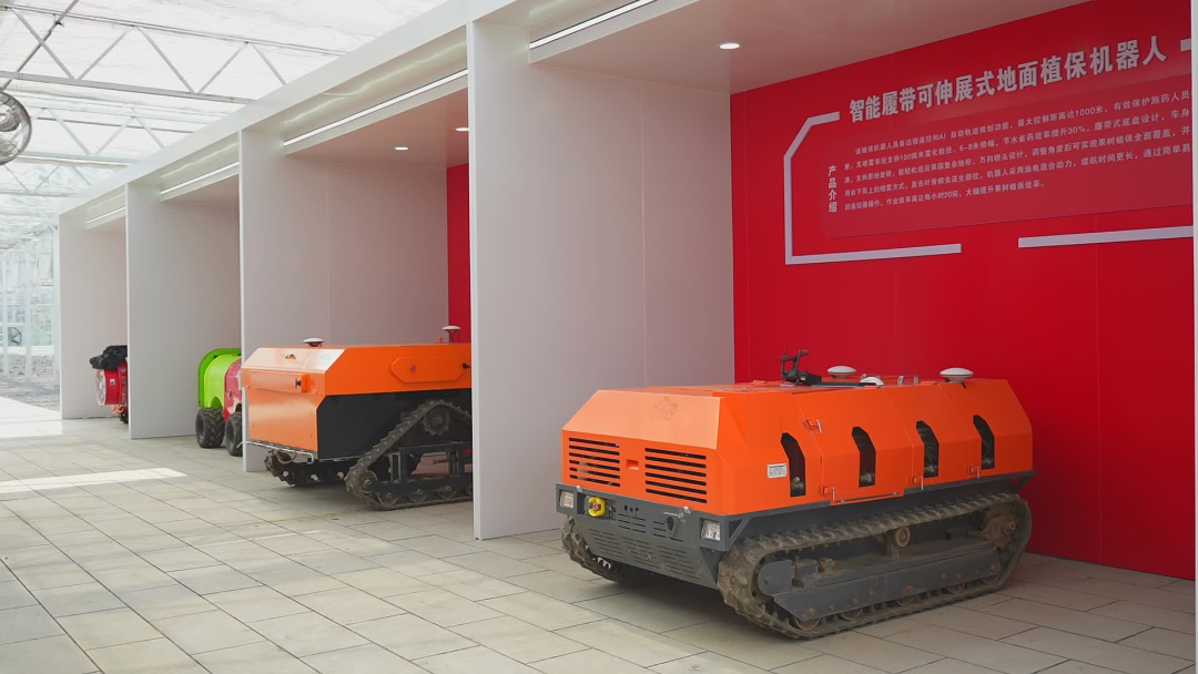 这款AI履带式机器人一天能完成10到15亩地的旋耕作业。搭载的北斗导航系统,可以自主设定路线,在棚内实现无人化自动旋耕。相比传统农机,它的旋耕深度能达到15到20厘米,有效提升了土壤的疏松度和透气性,为作物生长创造更好的条件。