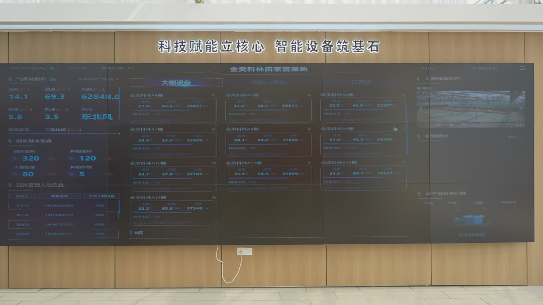 这里就是我们整个物联网系统的核心,它可以监控每个大棚的湿度、光照、温度等各项环境数据。同时,我们可以通过手机端远程操控大棚的通风口、保温棉被等设施的开关。像水肥一体打药机,也都接入了这个控制系统,坐在家里就能远程遥控。通过这些摄像头,我们随时远程查看每个大棚内的具体情况。