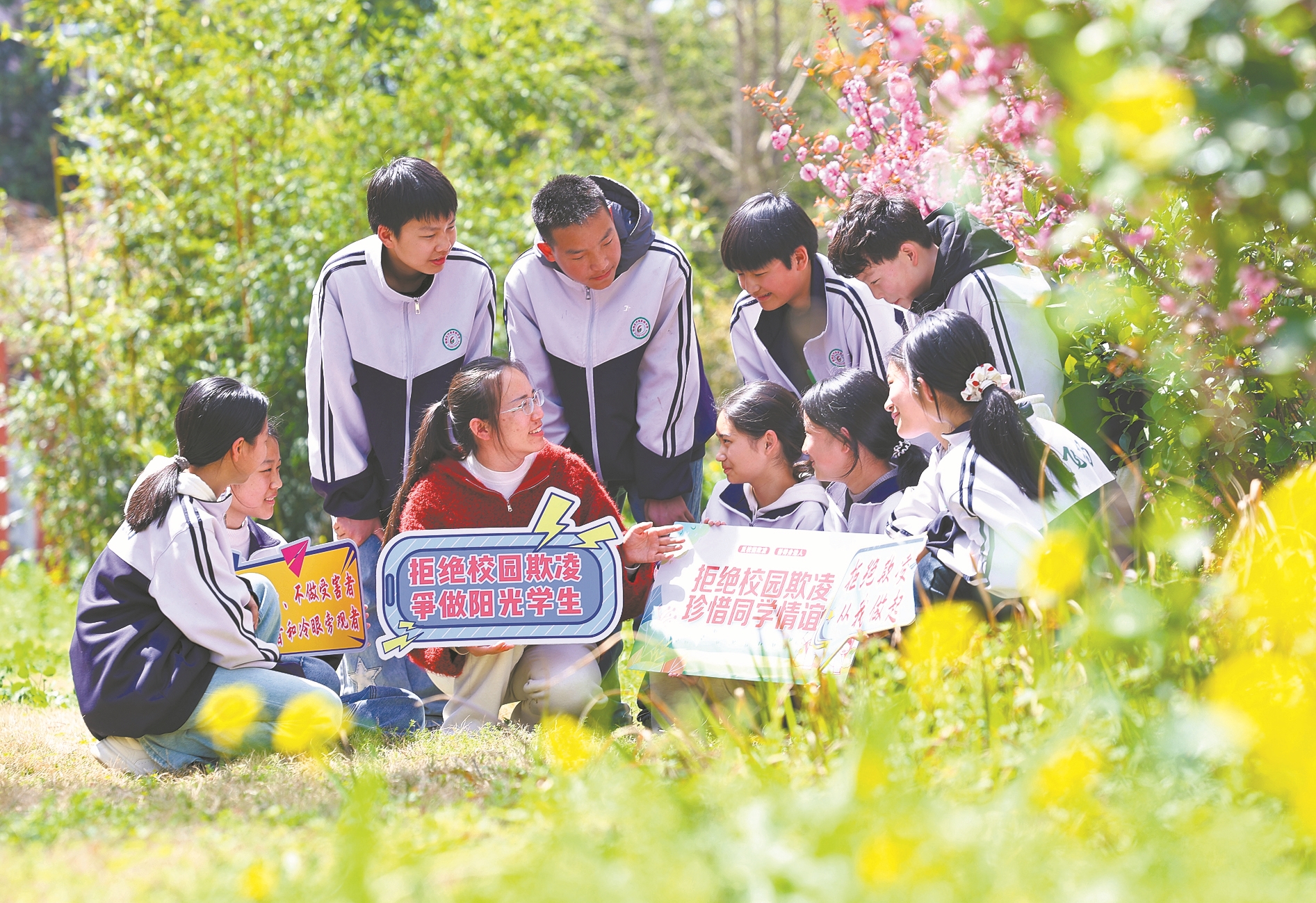 近日,樊城区竹条实验中学老师利用课间开展预防校园欺凌安全教育。老师结合学生年龄特点,通过互动问答、案例讲解等方式,讲解校园欺凌表现及应对方法,引导学生不做欺凌者和旁观者,厚植团结友爱意识,共建文明校园。