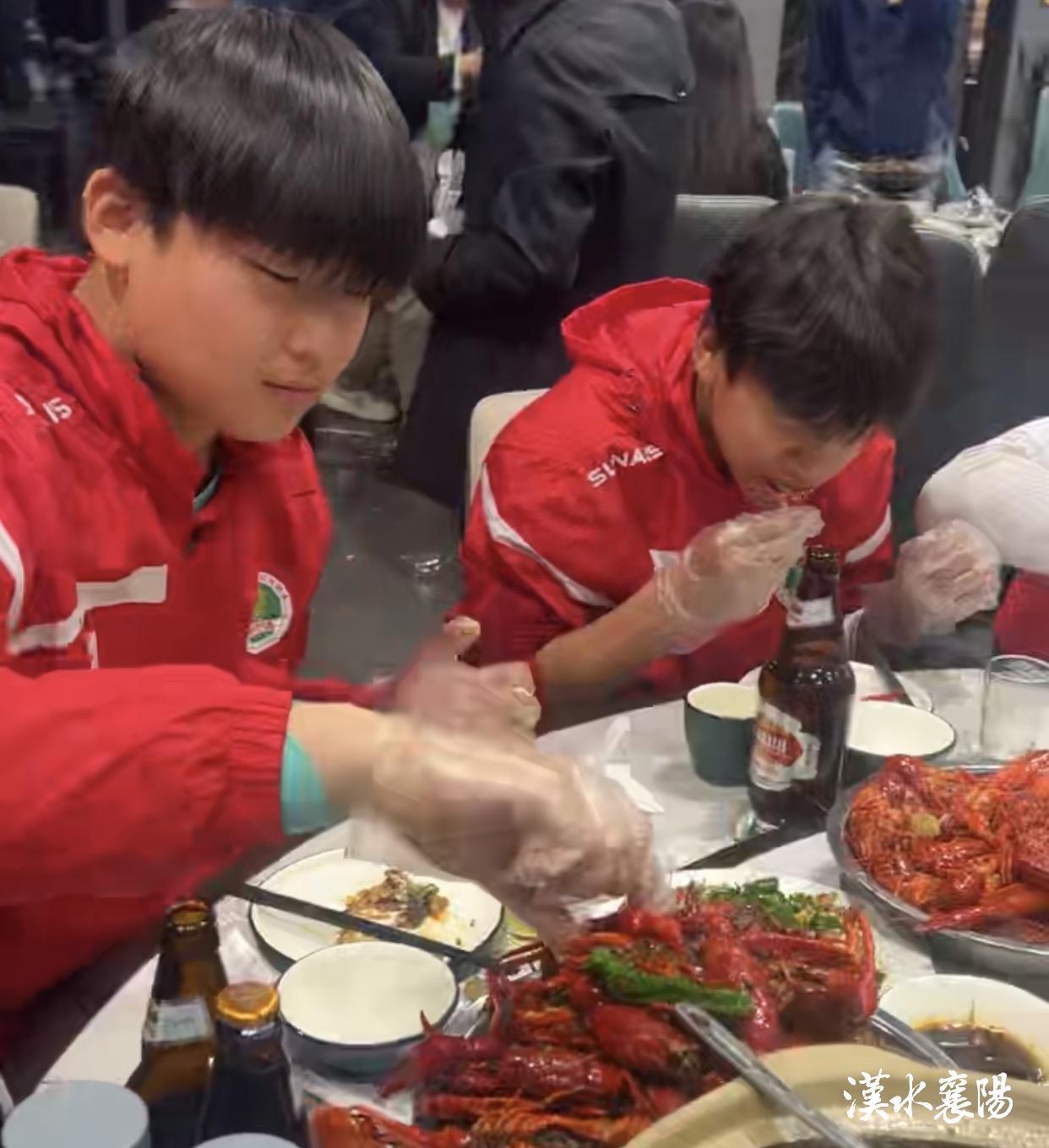 赛场内的哨声落下,赛场外的热闹已然聚拢,赛事热度迅速延伸至城市的街头巷尾。赛后,南阳足球队队员走进襄阳特色小吃街,品尝襄阳小龙虾、观赏特色民俗表演,沉浸式感受襄阳的市井烟火。酒店内“襄也是家,宛也是家,球场下来去吃虾”的横幅格外暖心,南阳足球队的队员们一边品尝美味,一边点赞:“虾子又大又好,襄阳小龙虾可太‘中’了!欢迎襄阳的朋友去南阳品尝我们的烩面。”一句句真诚的互动、一口口鲜美的美食,让襄宛两地的情谊在欢声笑语中愈发浓厚。