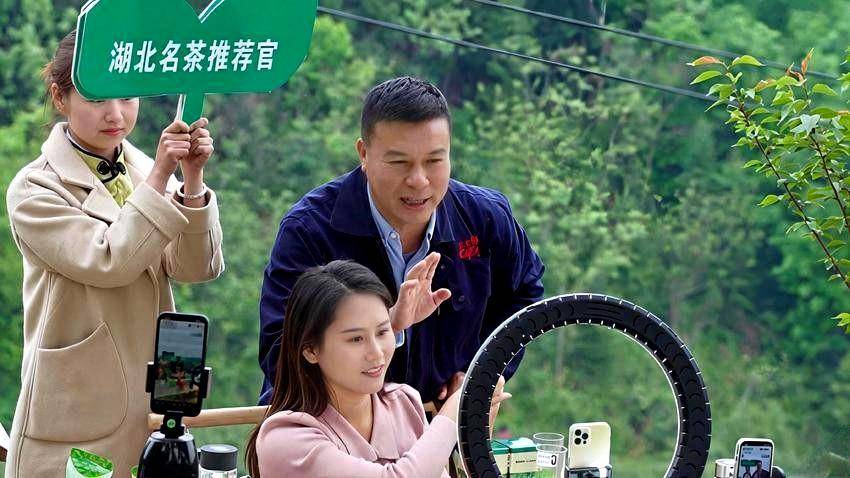 为让五山明前茶走出深山、走向全国,当地茶企线上线下齐发力。玉皇剑茶业董事长张于学介绍,公司紧跟数字浪潮,把直播间直接搬进万亩茶园,通过镜头实时展示采茶、制茶全过程,31万粉丝在线“云游茶乡”“一键购茶”,如今线上销售额已占总销售额的40%。“开园节我们邀请了1000多名粉丝到现场,既卖了茶,又带火了旅游,一举两得。”如今的五山镇,不仅是鄂西北最大的茶叶集散地,更获评全国乡村旅游重点镇,“茶香之旅”成为全国乡村旅游精品线路之一,茶叶已然成为当地绿色发展最靓丽的名片。