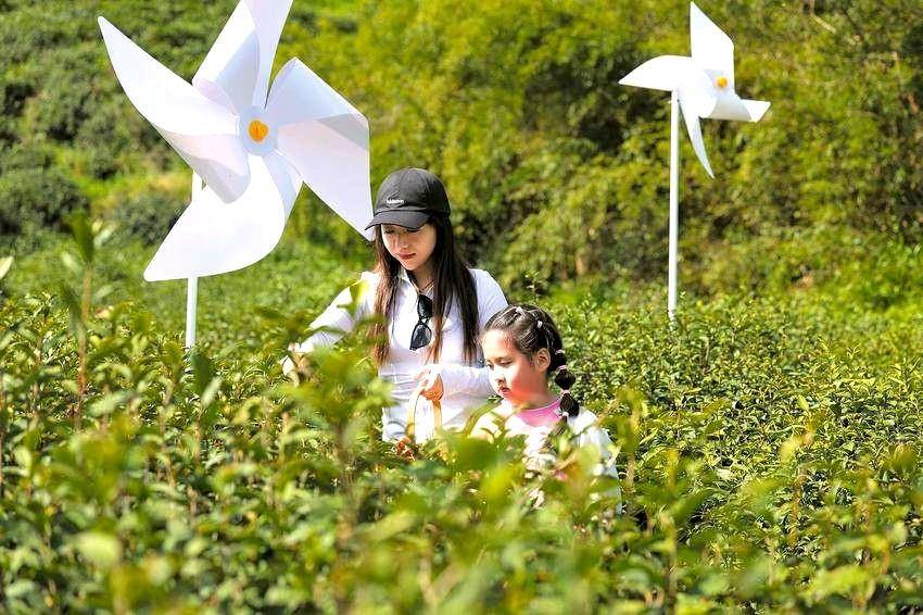 茨河镇的杨家大山有机茶园,则把茶旅融合玩出了新花样。这里海拔412米,气候适宜,1500亩茶园里套种着桃花、紫薇、李树等,形成了“3月采香茶、赏桃花,5月摘桃子、采大球盖菇,9月摘李子”的四季景致,实现了四季有景、四季有收获。“我们全程人工管护,最高峰能带动100多人务工,加上配套的旅游设施,让游客来了能采茶、能品茶、能游玩,真正实现‘茶区变景区’。”杨家大山农旅有限公司总经理李道军介绍,下一步还要加大配套设施投入,让“茶山变金山”。