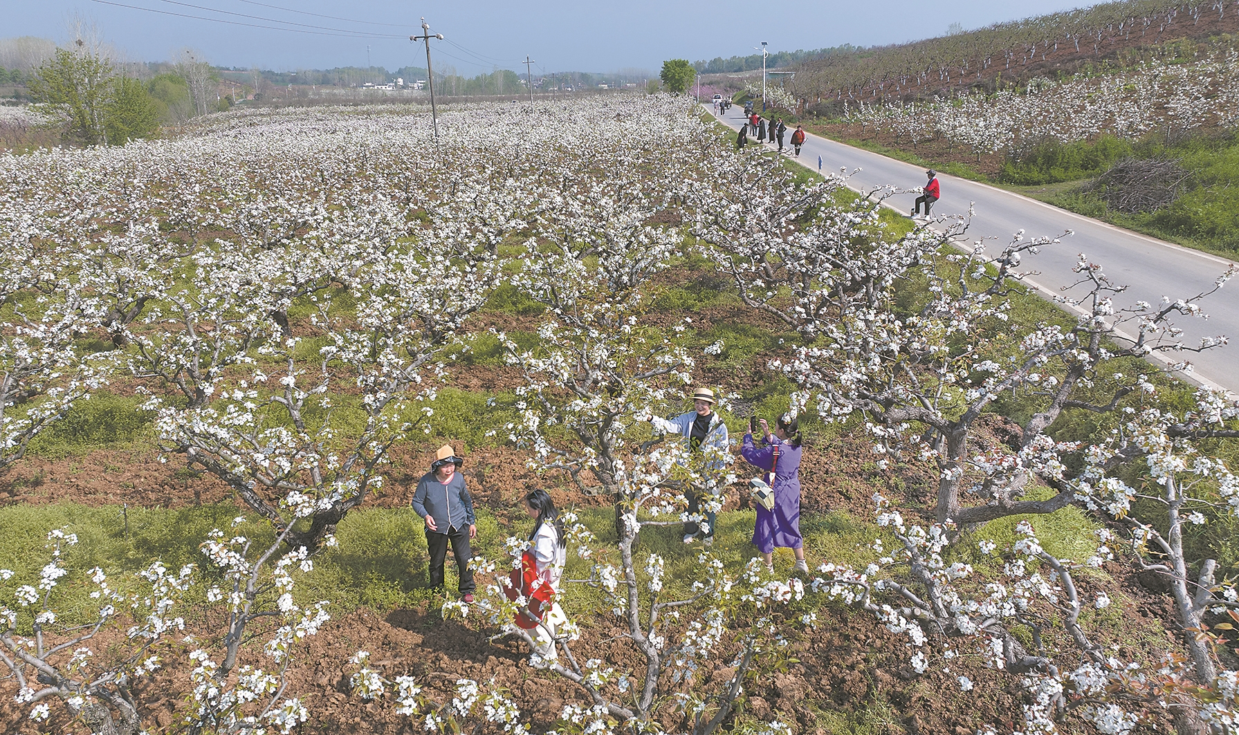 4月1日,游客在老河口市洪山嘴镇苏家河村梨园游玩赏花。