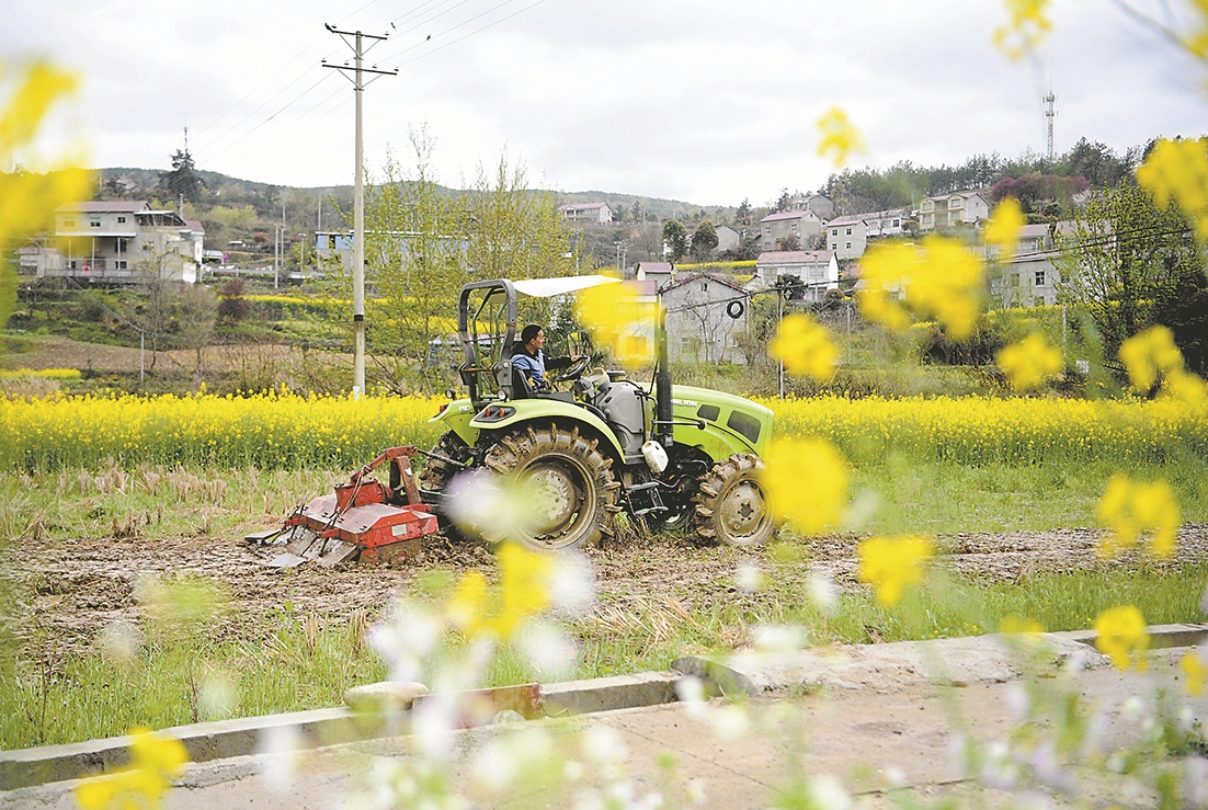 3月30日,保康县店垭镇黄坪村村民驾驶农机在田间劳作。