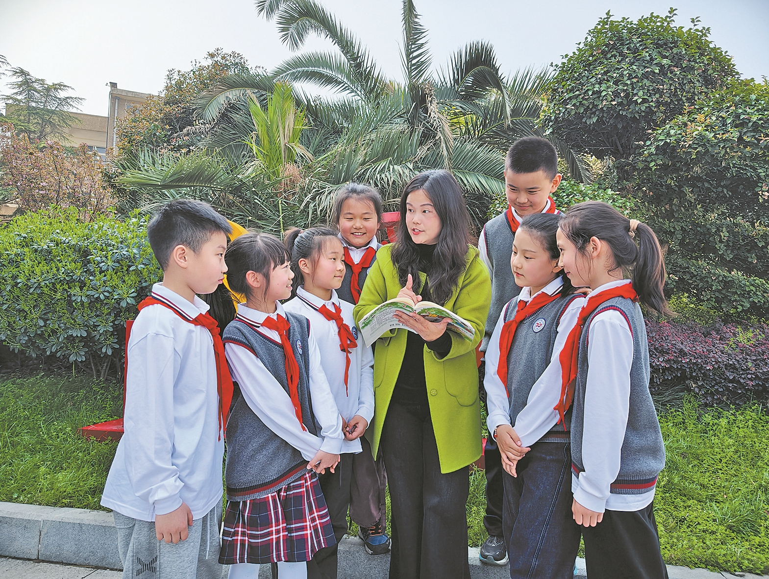 钱靖指导学生阅读。