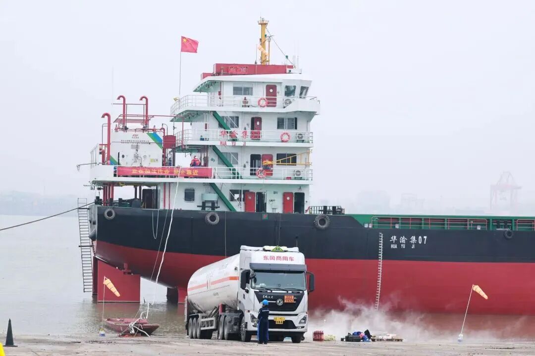 3月24日15时,黄冈市首单LNG船舶加注工作在湖北合创重工有限公司码头作业区顺利完成,标志着长江鄂东段首次液化天然气船舶加注工作正式完成。 图源黄冈经信