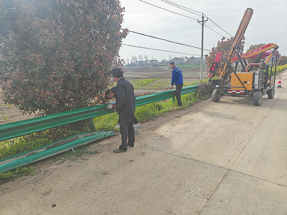 目前,宜城市农路中心已新装警示标牌42块、警示柱40根,修复损毁钢护栏14处100多米。下一步,宜城市农路中心将继续加强巡查,确保广大群众出行安全及农村公路的安全畅通。图为工作人员正在检查钢护栏。 冯涛 刘华平 陈天亮 摄