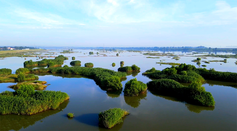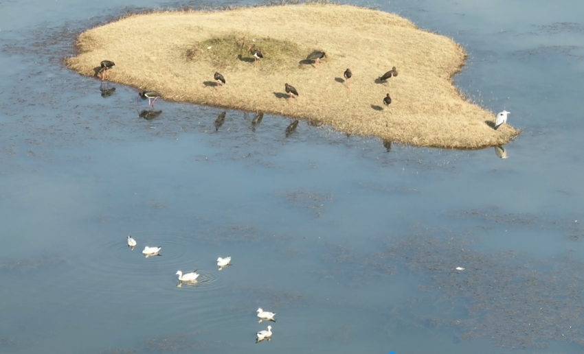 与此同时,谷城县先后实施汉江中下游环境保护工程、湿地生态保护和修复、生态效益补偿等项目建设,有效维持了流域内湿地生态系统功能,丰富了生物多样性。通过流域内微地形改造,湿地水面越来越大,小鱼小虾的数量也随之增多,引来众多迁徙候鸟来此聚集。