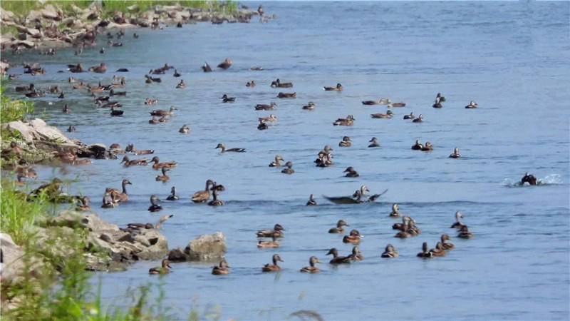 何富芝介绍,随着生态环境持续改善,这里已成为候鸟迁徙途中的重要补给站和栖息地。据不完全统计,汉江湿地监测的鸟类有9目、28科、120余种,其中中华秋沙鸭、黑鹳、小天鹅、灰雁、灰鹤、小白额雁等国家重点保护鸟类多达28种,这里是全国重要的候鸟迁徙通道之一。