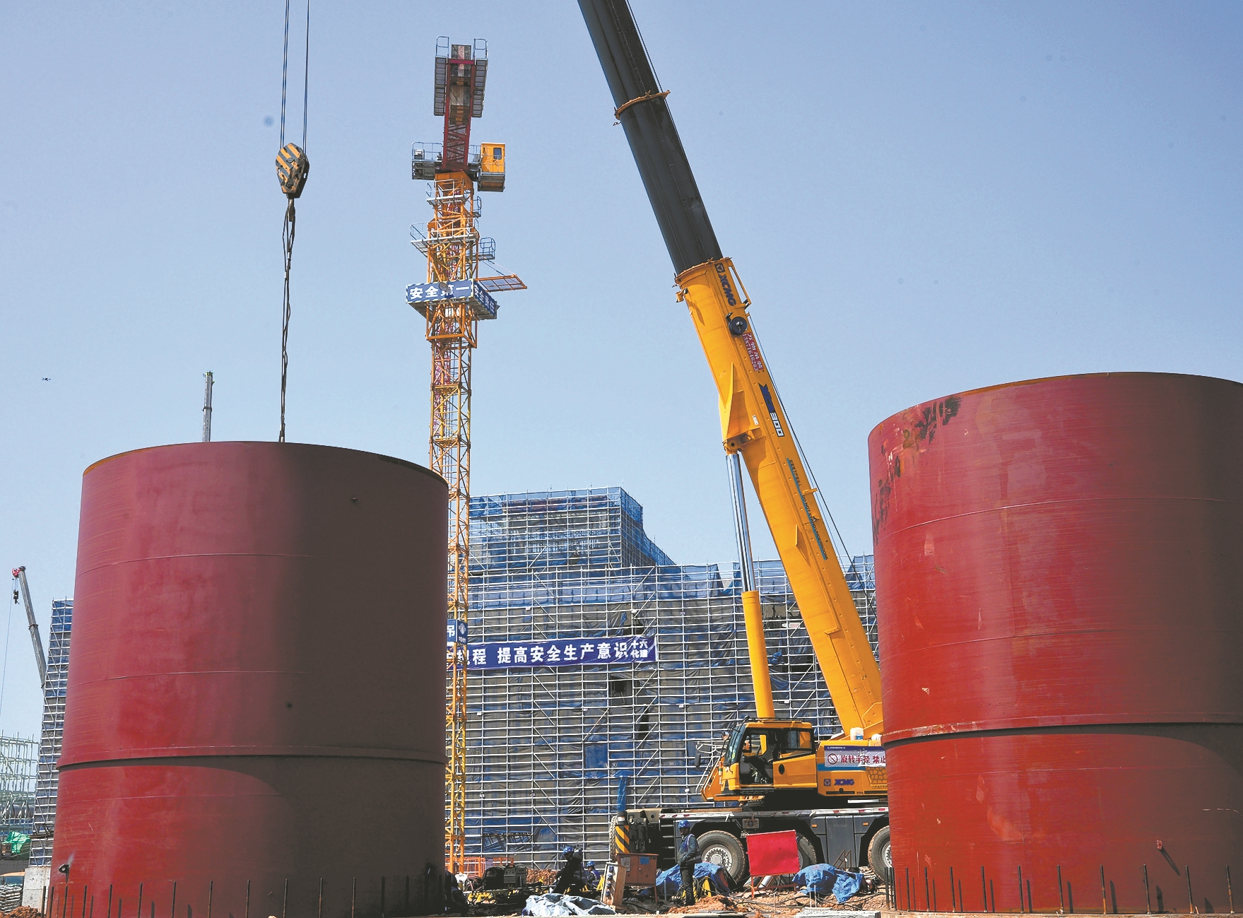 4月1日,工人在位于谷城经济开发区的兴发保谷磷化工产业园一期项目建设现场作业。