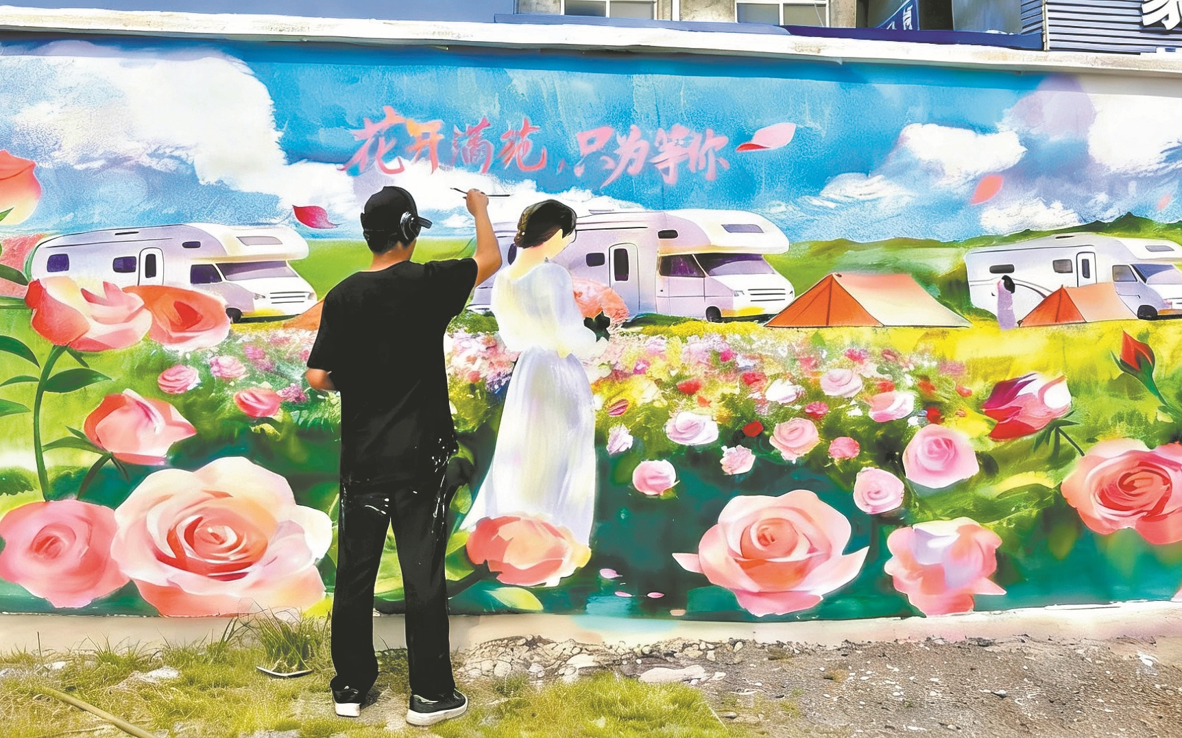 “我们结合牛首本土特色进行实地创作,将自然景观、历史文化、旅游线路都融入墙绘。”彩绘师贾蒙介绍,团队围绕红色教育、农文旅融合、戏曲文化三大主题,在多个点位同步创作。