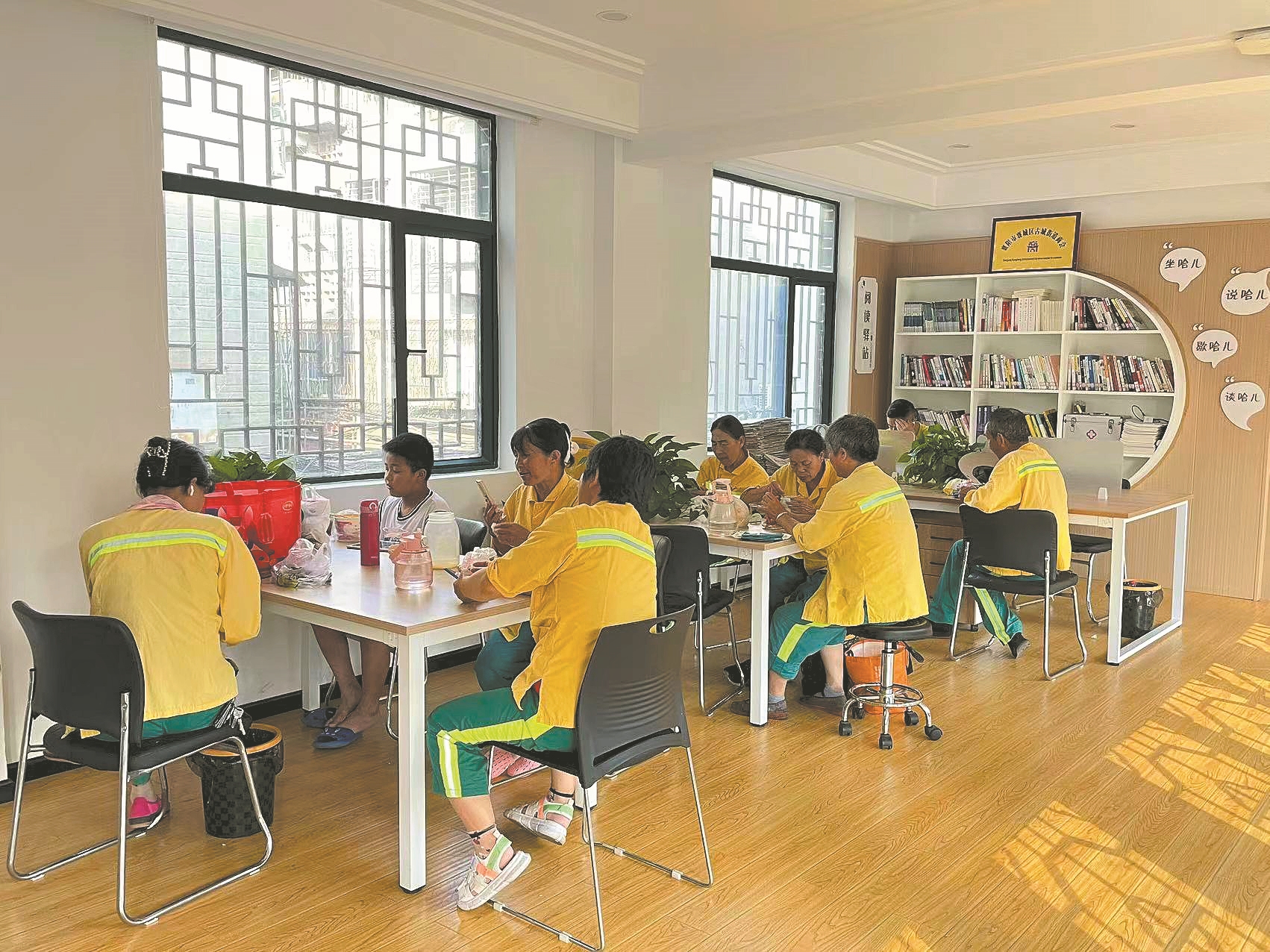环卫工人在北街“红色驿站”休息。
