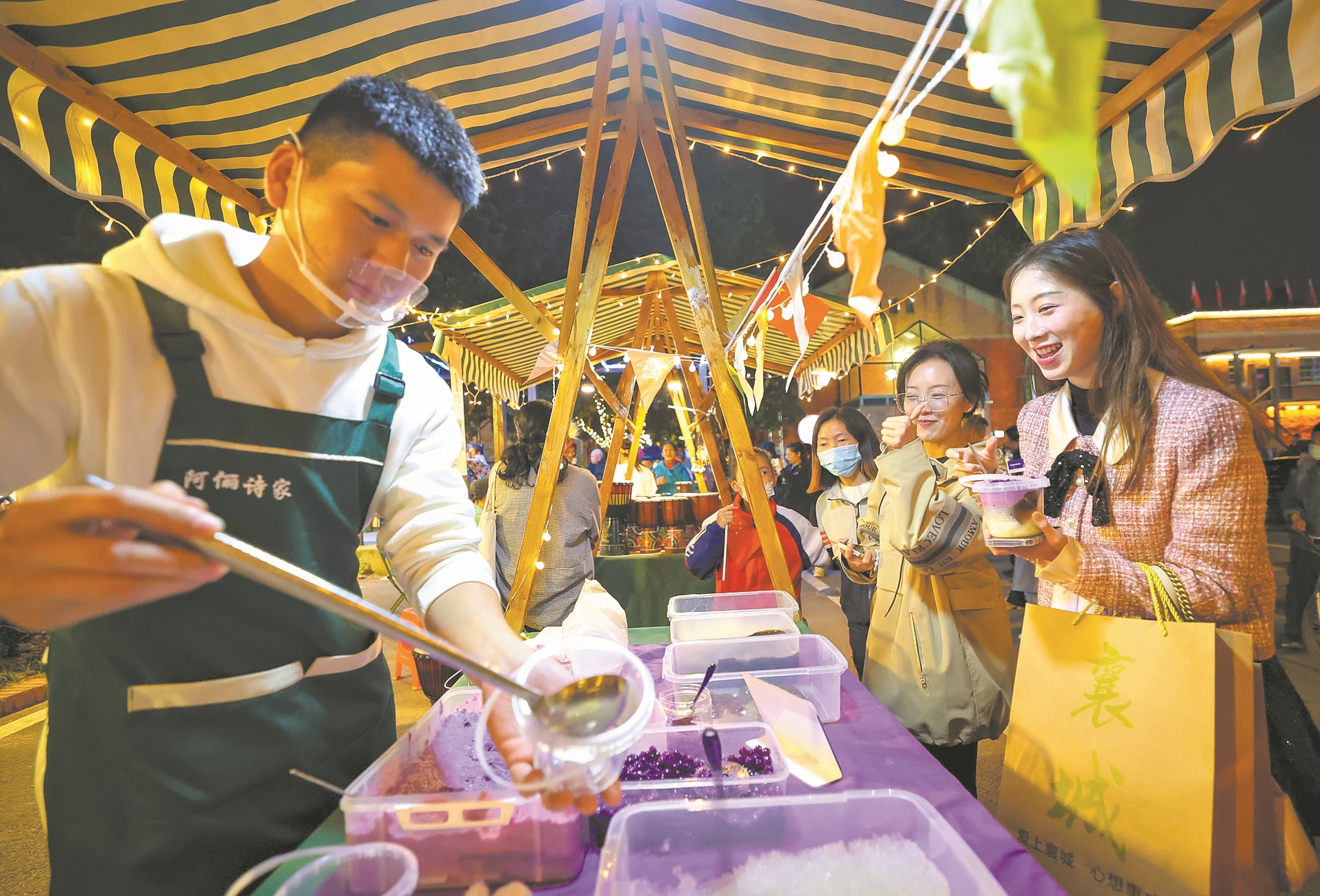 游客在北街品尝特色美食。