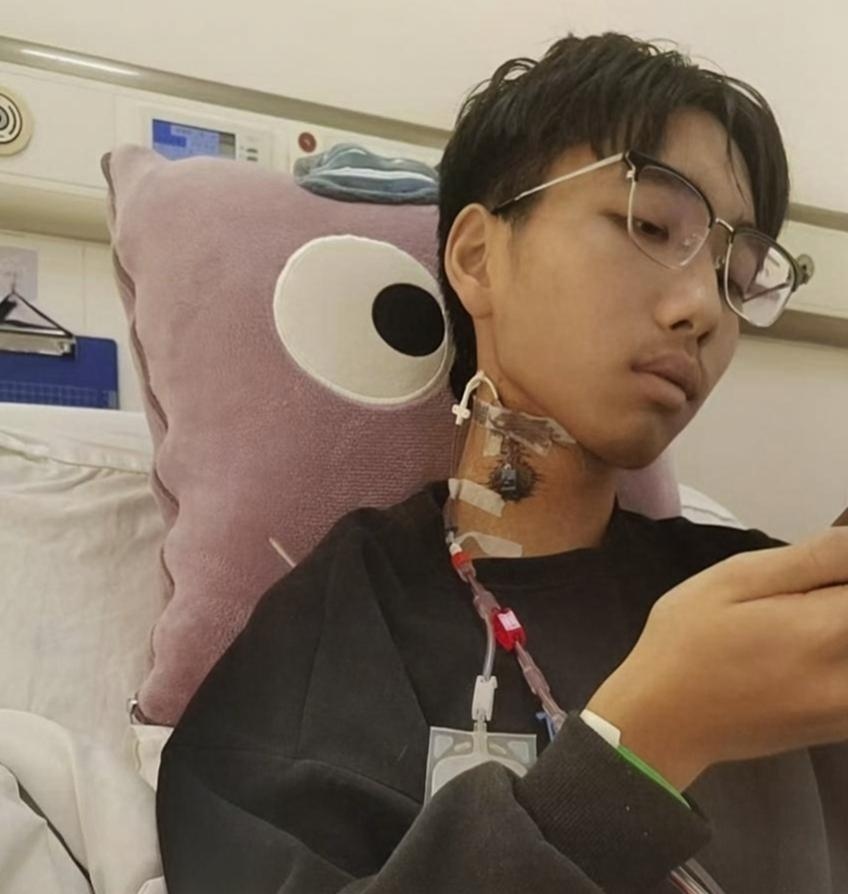 喝水、吃饭、吞咽,每一个最平常的动作,都会牵动颈部的伤口,疼得像针扎一样。第一天,他还能勉强喝几口粥,到了第二天,疼得实在受不了,几乎粒米未进,全靠营养液撑着。