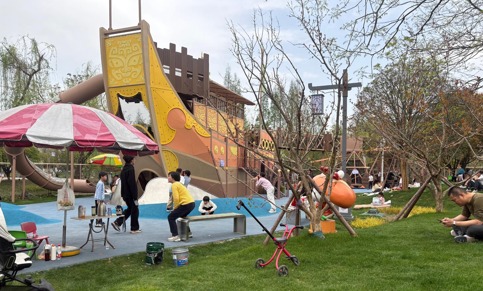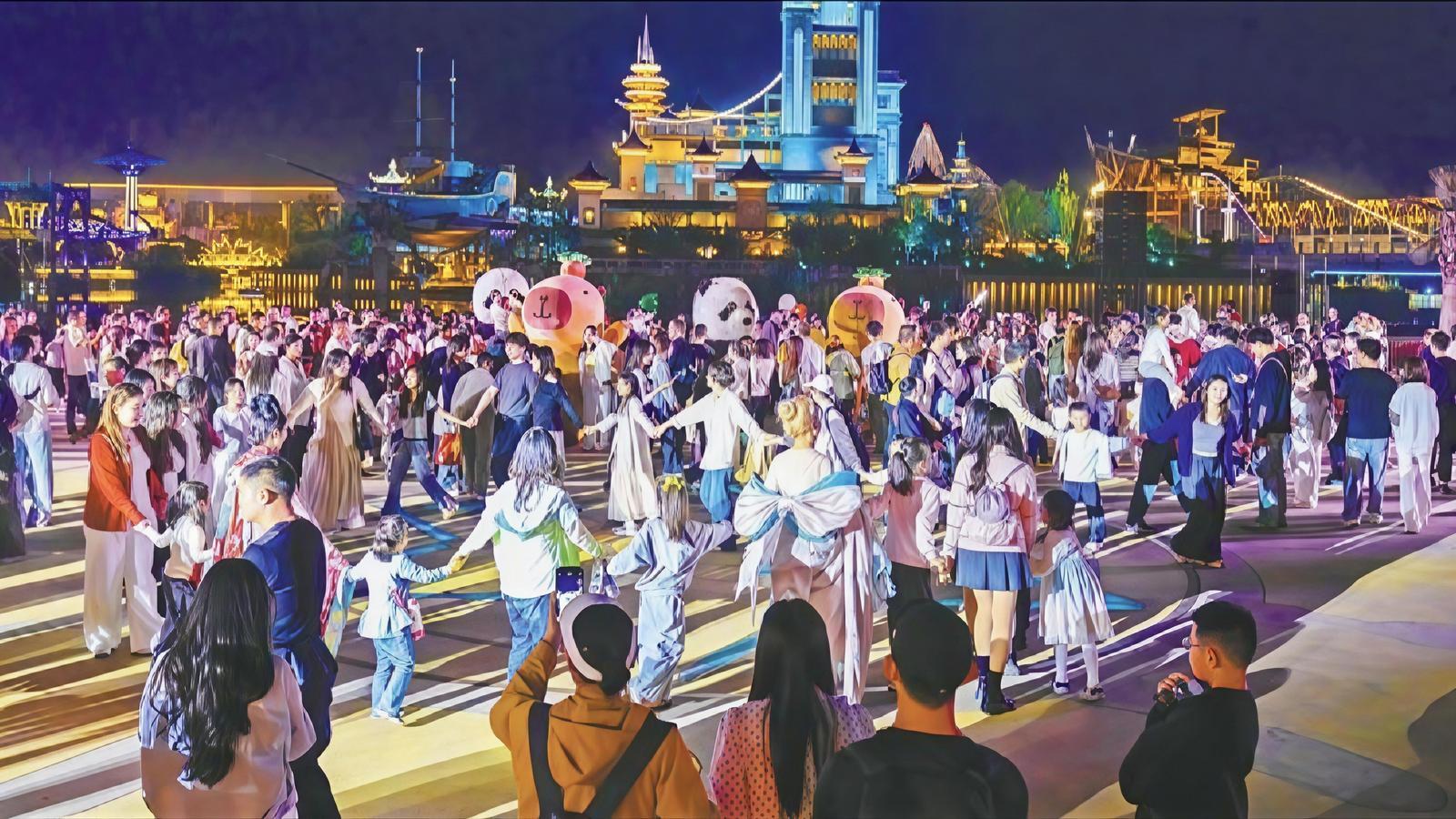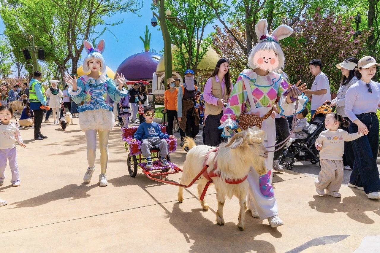 除了体验各种新潮有趣的游乐项目,游客们还能近距离欣赏“AI动物奇幻秀”“奇幻国潮大巡游”。赛博“熊猫”与游客亲密互动,憨态可掬的样子引得众人捧腹;机器小马嗒嗒嗒地跑着,呆萌可爱的样子博得一众小姐姐的芳心。全新升级的“奇幻国潮大巡游”以动物人偶+特色花车的混搭风,成为夜色中一道行走的风景线。清明小长假,奇幻谷营业时间延长至晚上10点,进一步点燃假日夜间旅游市场。