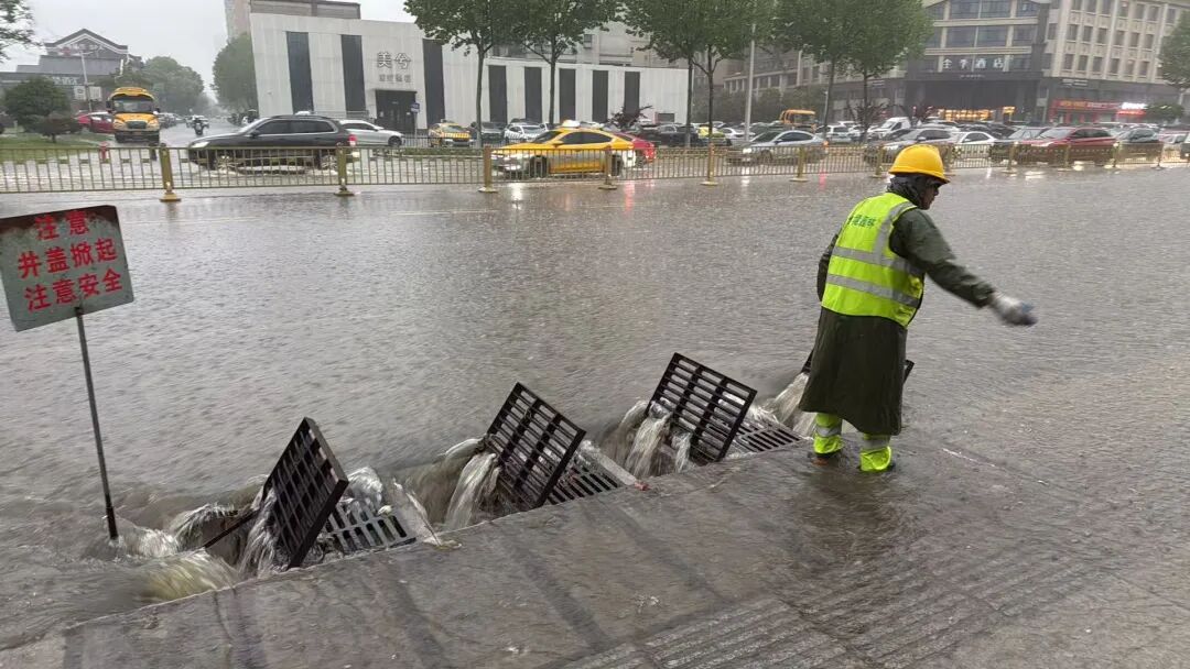 在大新路以西片区,片区调度组顶着暴雨巡查大洪路、仙桃大道疾控中心路口、丝宝路等易积水点位,值守人员撬开井盖、清理落水筛堵塞物;在大新路以东片区,片区调度组紧盯何李路青青家园、叶王路十字路口、新城大道气象局等关键节点,值守人员“两人一岗、三人一段”,专人看护每一个开启的井盖。