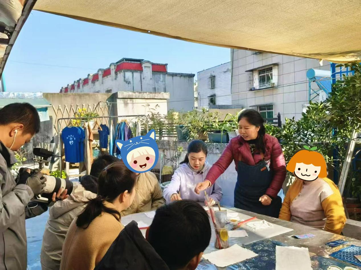 在襄阳市鸿岳梦工厂社会助残服务中心,一块块白布经浸、扎、染、晒,蜕变为气韵生动的蓝染作品。专注创作的学员们,大多是智力残疾人。在这里,他们不再是需要被时刻照顾的“弱者”,而是掌握非遗技艺、能够创造价值的“手艺人”。这一切改变,离不开朱小妮的坚守与付出。