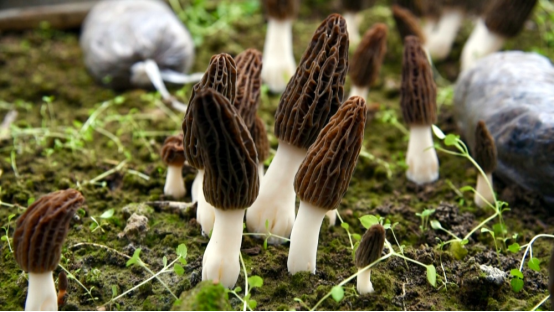 菌棚藏珍,鲜香盈田,特色种植助增收。当茶山绿意正浓时,谷城城关、石花、庙滩、冷集四大产区的近万亩羊肚菌种植基地,也迎来了丰收的盛景,棚内生机盎然,硕果满枝。石花镇蔡家营村羊肚菌基地内,42岁的基地负责人王建国正蹲身忙碌,手中的小刀轻轻划过菌柄,动作轻柔而娴熟,生怕惊扰了这“菌中之王”的鲜嫩。