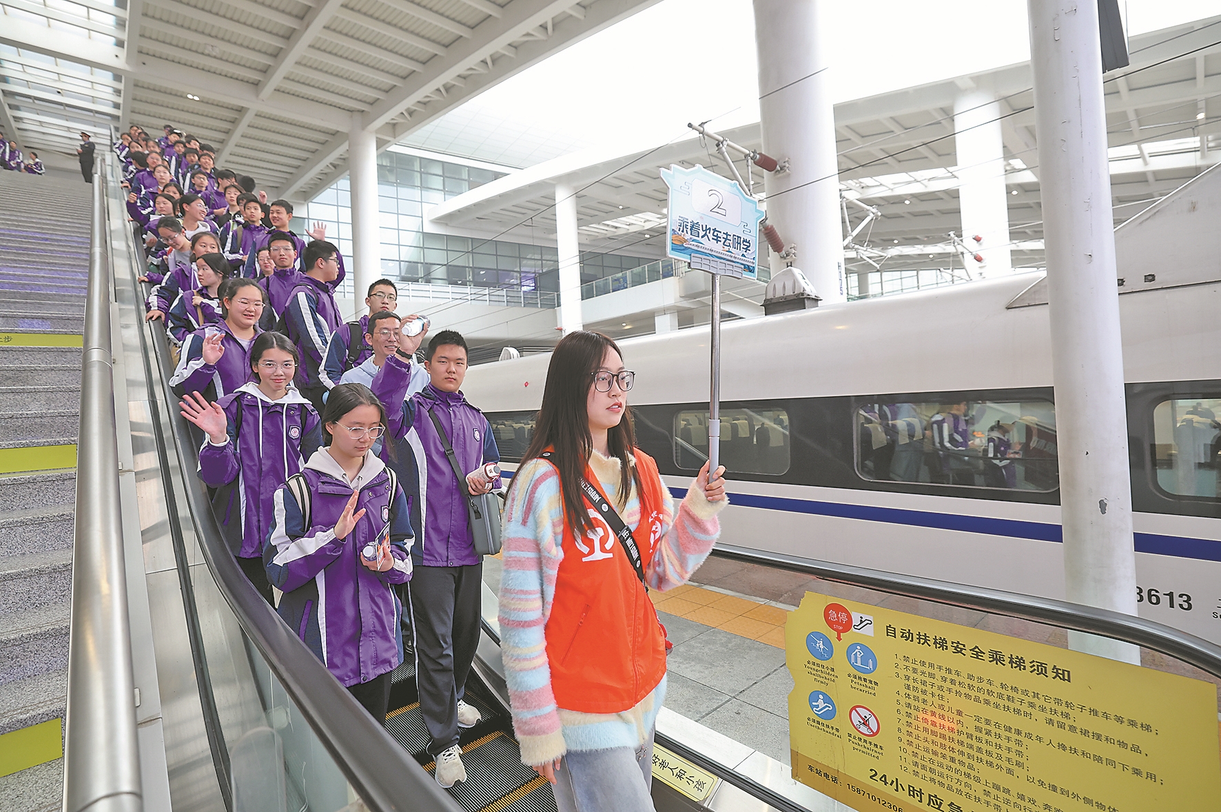 为保障此次研学活动安全、顺利开展,襄阳东站提前与汉城景区和东风中学对接,量身定制服务方案,安排工作人员与志愿者全程引导帮扶,实现进站、候车、乘车全流程“一站式”服务。预计4月15日,东风中学小学部还有近800名学生乘高铁踏上研学之旅。