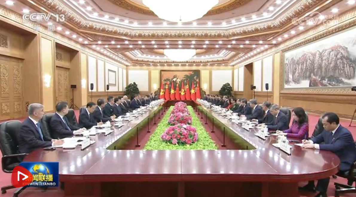 习近平再次祝贺苏林当选越南国家主席。习近平指出,你当选越南国家主席后第一时间到访中国,体现了你对发展中越关系的高度重视。相信在以苏林同志为首的越共中央坚强领导下,越南必将坚定走好社会主义道路,朝着建党建国“两个一百年”奋斗目标砥砺奋进。无论国际形势如何变化,中方始终将越南作为周边外交优先方向,愿同越方秉持初心、赓续友谊,团结协作、相互支持,继续按照“六个更”总体目标,高质量推进全面战略合作,加快构建更高水平具有战略意义的中越命运共同体,为推动构建人类命运共同体作出更大贡献。