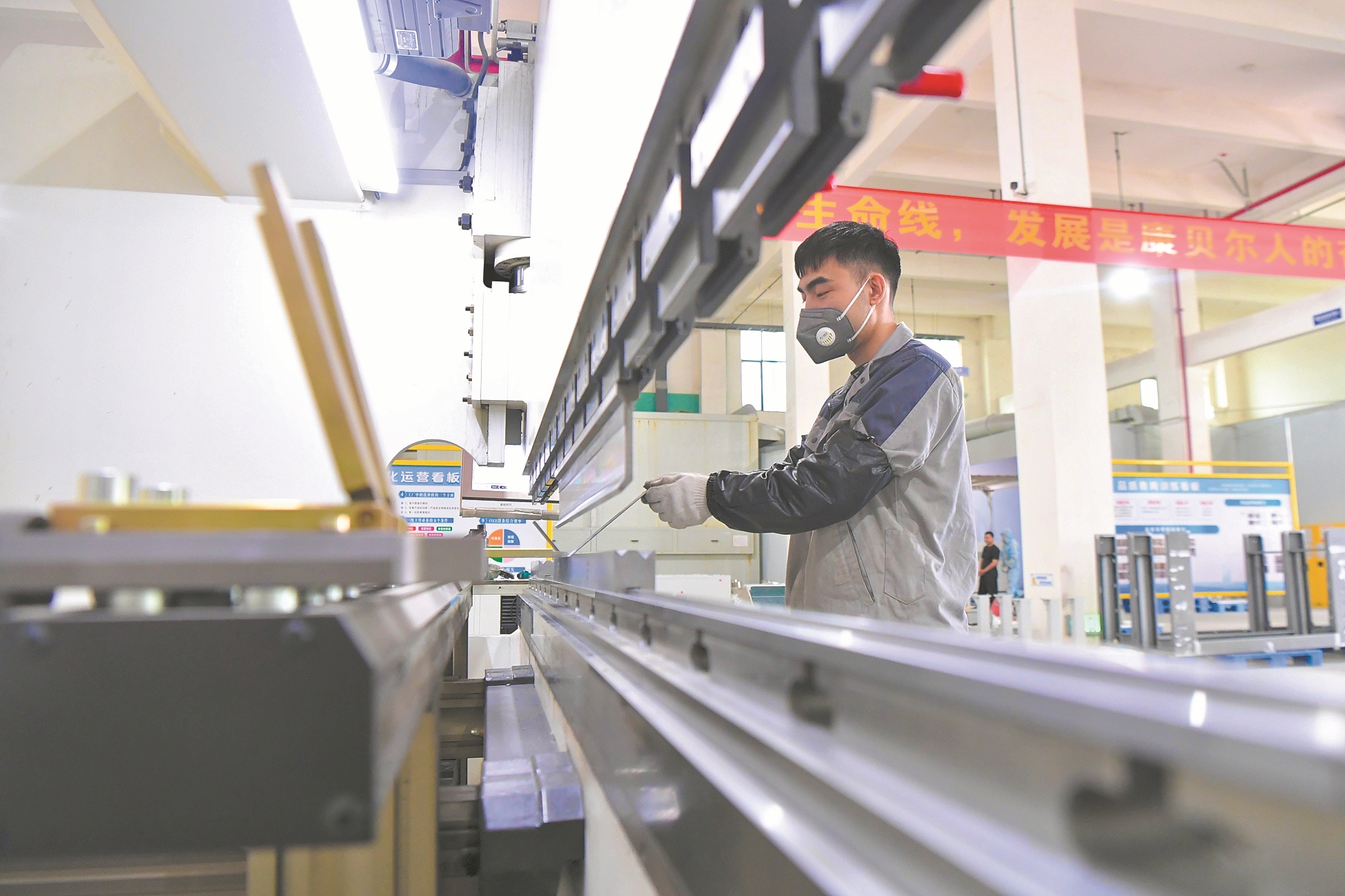 4月13日,在东津新区襄阳康贝尔智能装备有限公司生产车间,工人正熟练操作精密仪器,一条条智能生产线设备有序组装下线,即将交付客户。