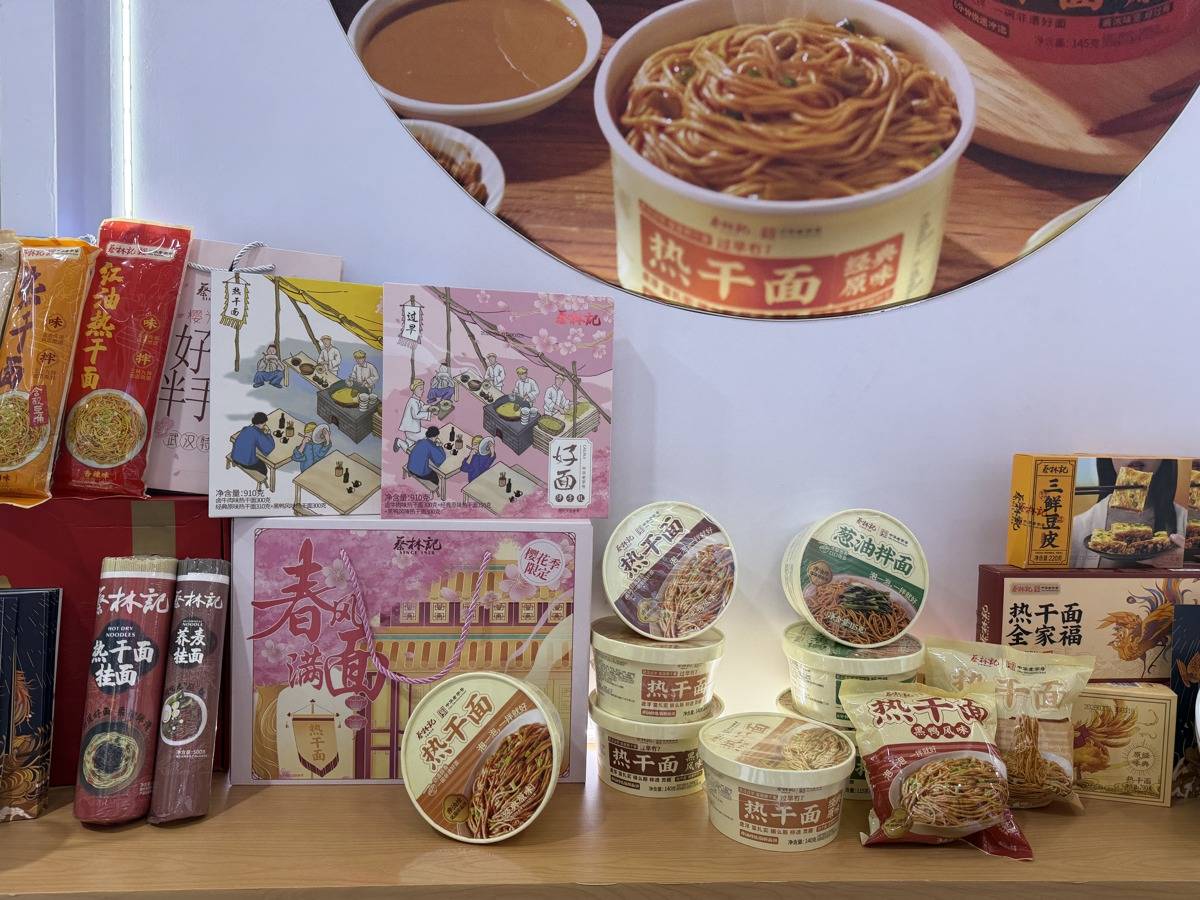 2023年,蔡林记在新加坡开出首家海外门店。开业即引爆当地社交媒体,中晚餐高峰期排队等位、热门菜品需提前预订成为常态。展台负责人刘欣麟介绍:新加坡的反馈非常好,因为当地华人比较多,对热干面的接受度很高。目前,蔡林记已在海外开设6家直营门店,出海版图正持续扩大。