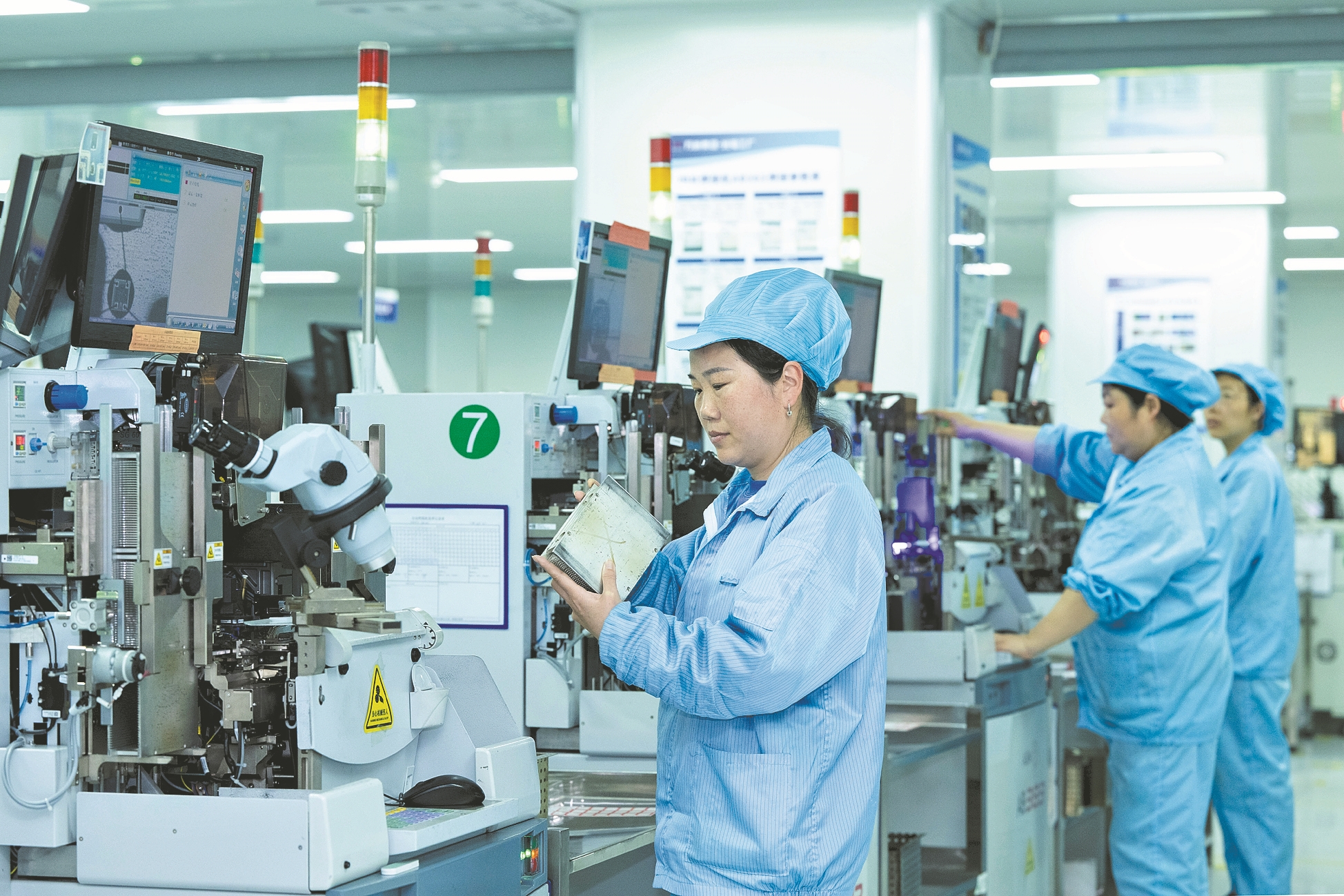 万洲电气襄阳工厂红外产品生产车间,智能化生产线高速运转,工人们有序作业,一派繁忙景象。 记者 江旭东 通讯员 熊海娟 徐琦 摄