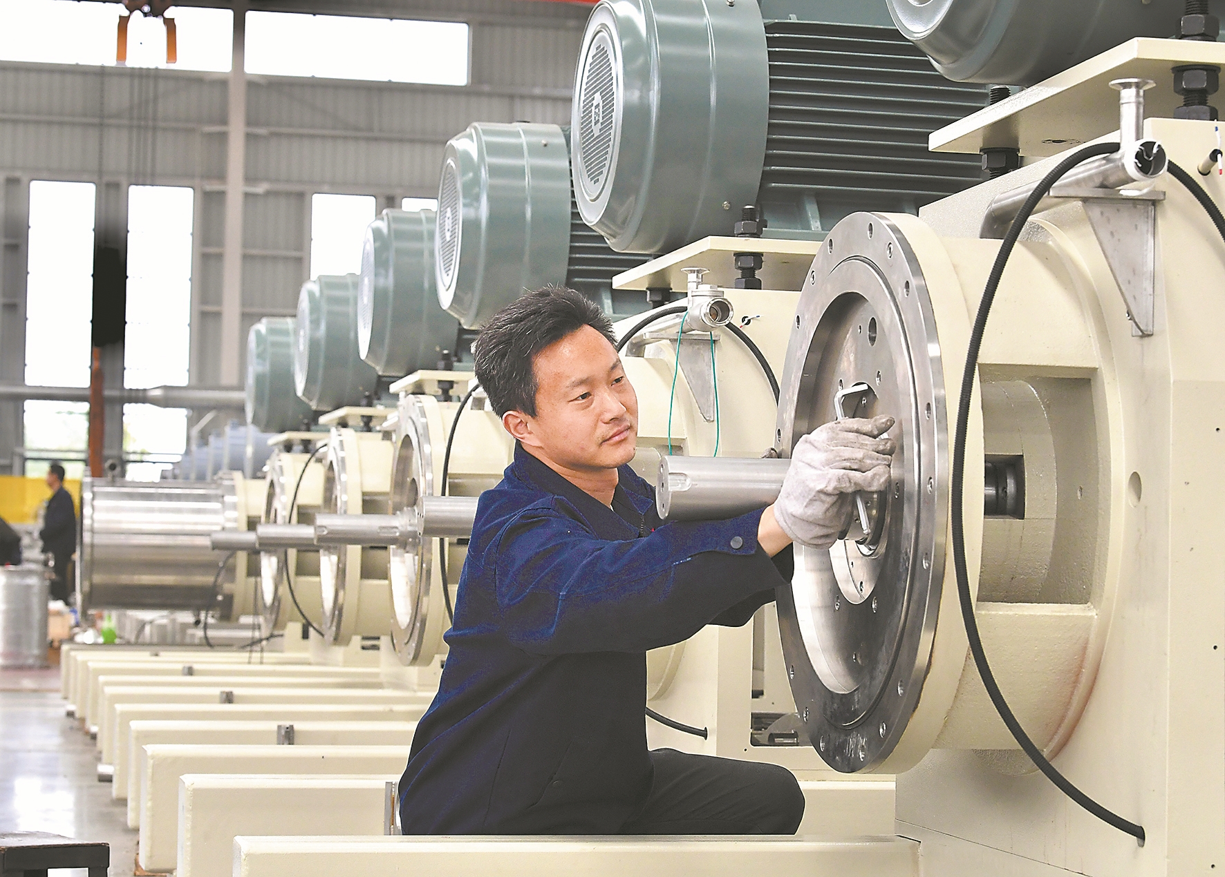 4月13日,在位于东津新区的襄阳鸿凯智能装备有限公司生产车间内,工人们正赶制订单产品。